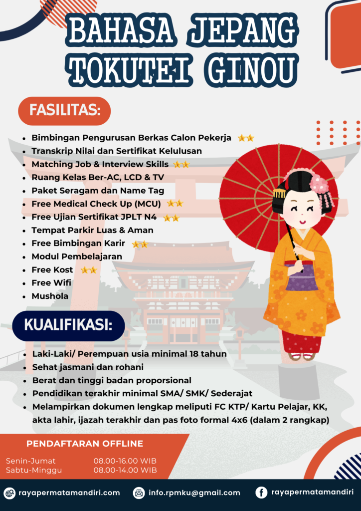 - Pelatihan Intensif Bahasa Jepang selama 6 Bulan